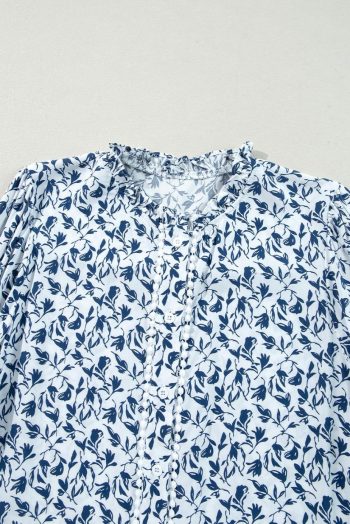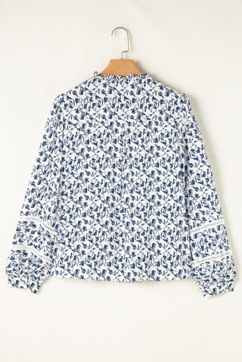 Blouses | Blue Floral Print Lace Detail Puff Sleeve Fall Shirt – Women