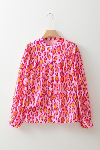 Blouses | Rose Red Leopard Print Balloon Sleeve Loose Blouse – Women