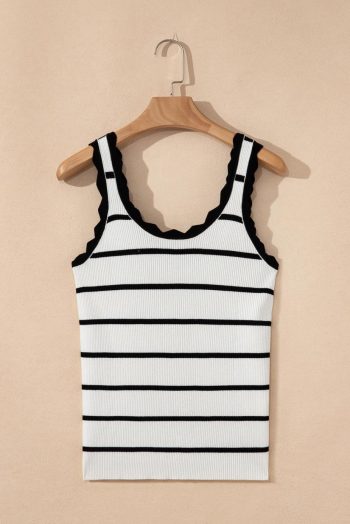Knit Tops | Black Scalloped Edge Striped Ribbed Tank Top – Women