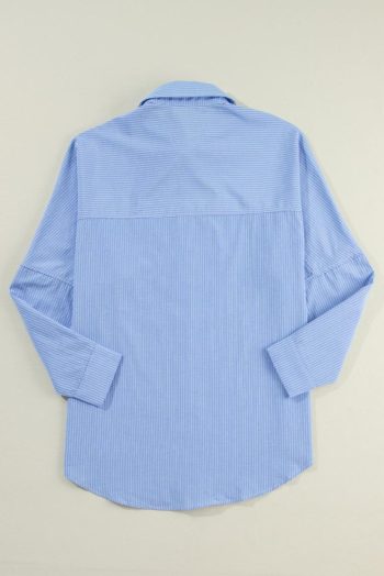 Long Sleeve Tops | Sky Blue Stripe Roll Tab Sleeve Pocketed Tunic Shirt – Women