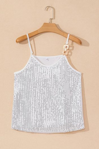 Sleeveless Tops | White Sequin Spaghetti Strap Camisole – Women