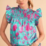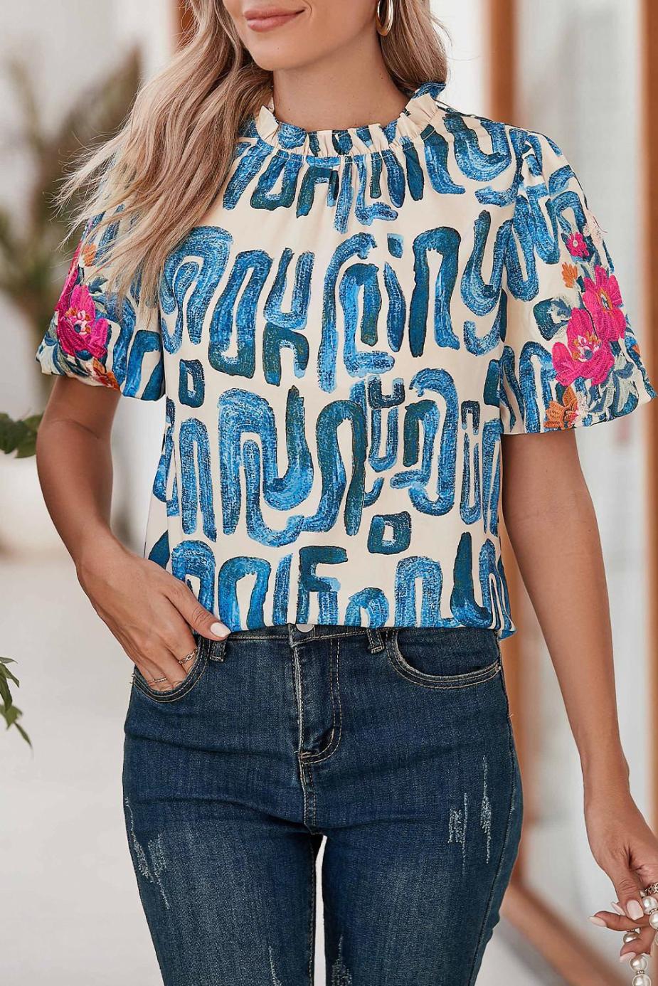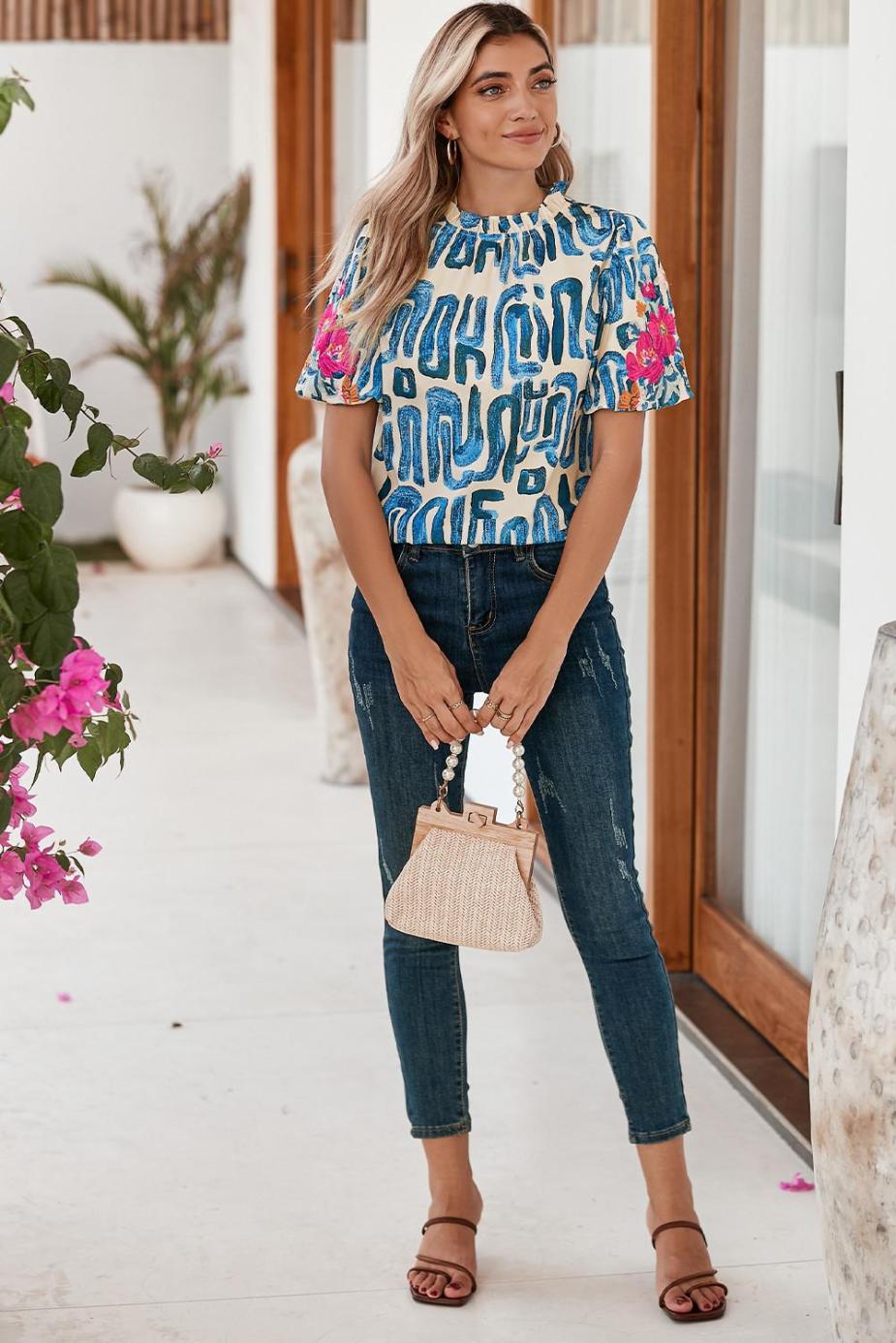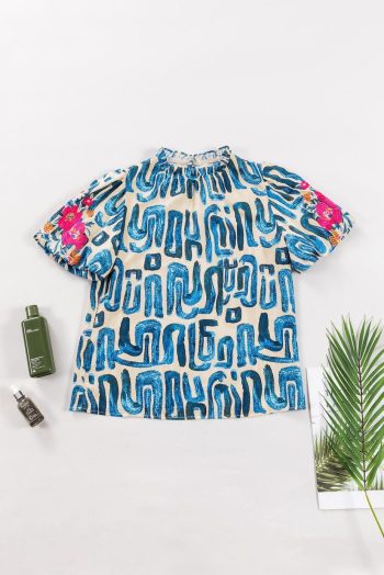 Blouses | Beige Abstract Floral Print Frilled Neck Puff Sleeve Blouse – Women