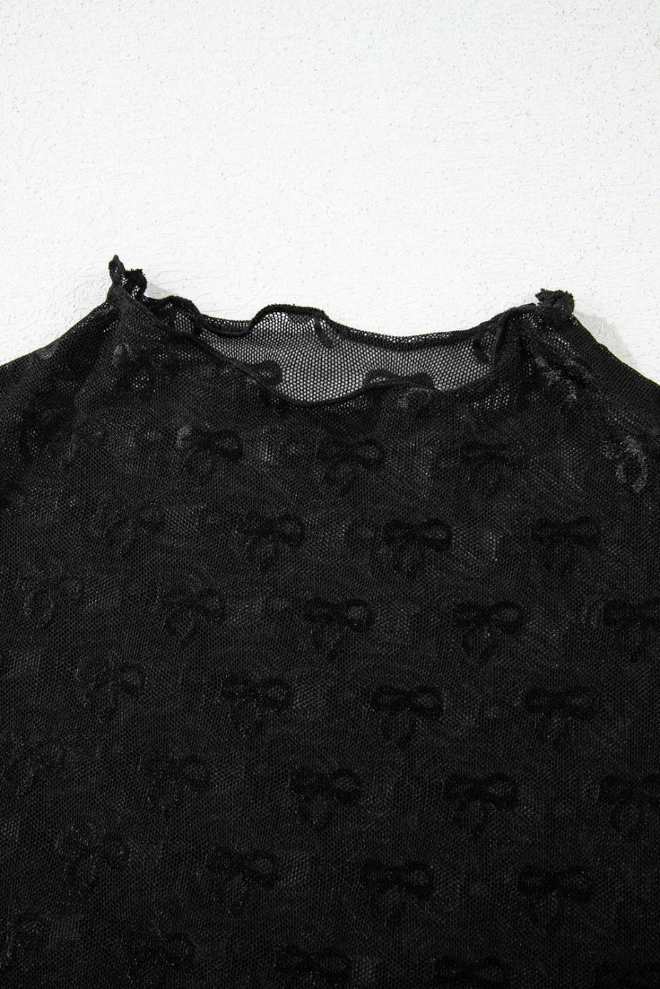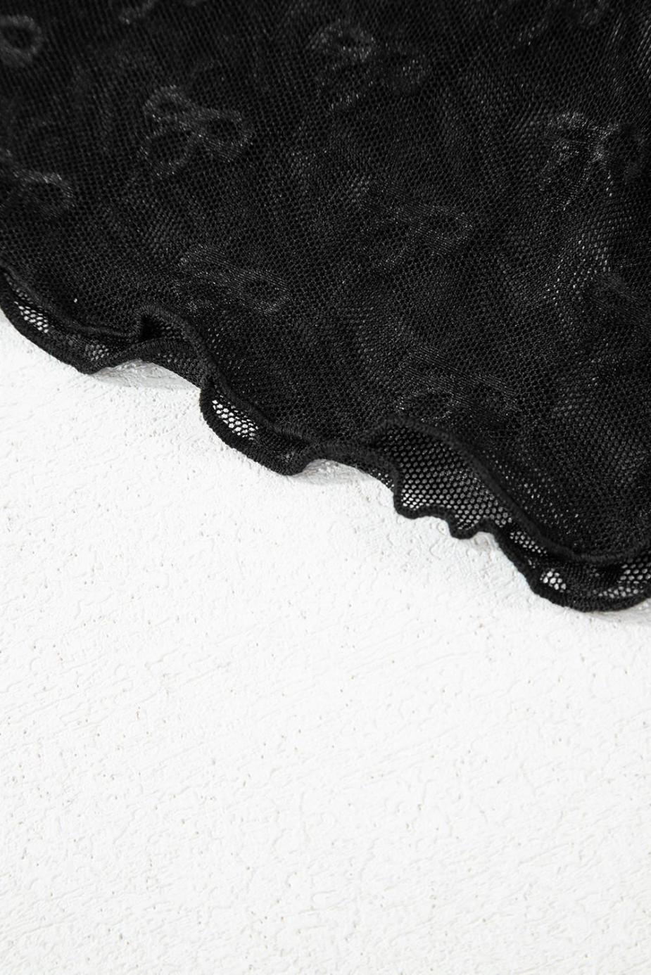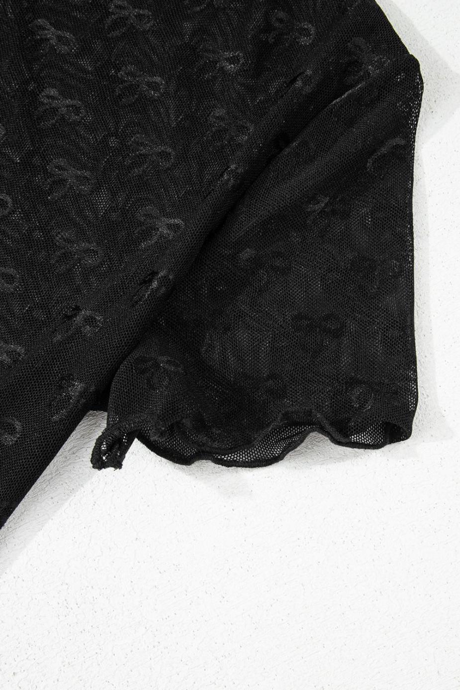 | Tag | Color Black,Pattern Alloverprint,Pattern Bow,Detail Mesh,Style Elegant,Style Casual,Season Summer,Sale Clearance,Tops Sale,Year 2025 | ||