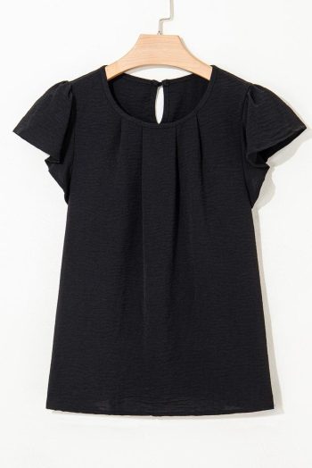Blouses | Black Flounce Sleeve Pleated Textured Blouse – Women