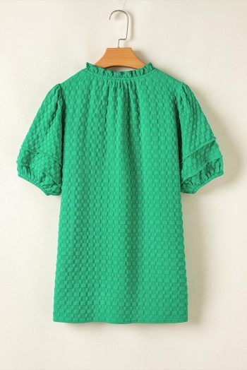 - It Features A Frilled Collar And Puff Short Sleeve.