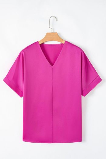 - Effortlessly Stylish In A Vibrant Bright Pink Hue, This V-Neck Dolman Sleeve Top Offers A Relaxed And Loose Fit For All-Day Comfort.