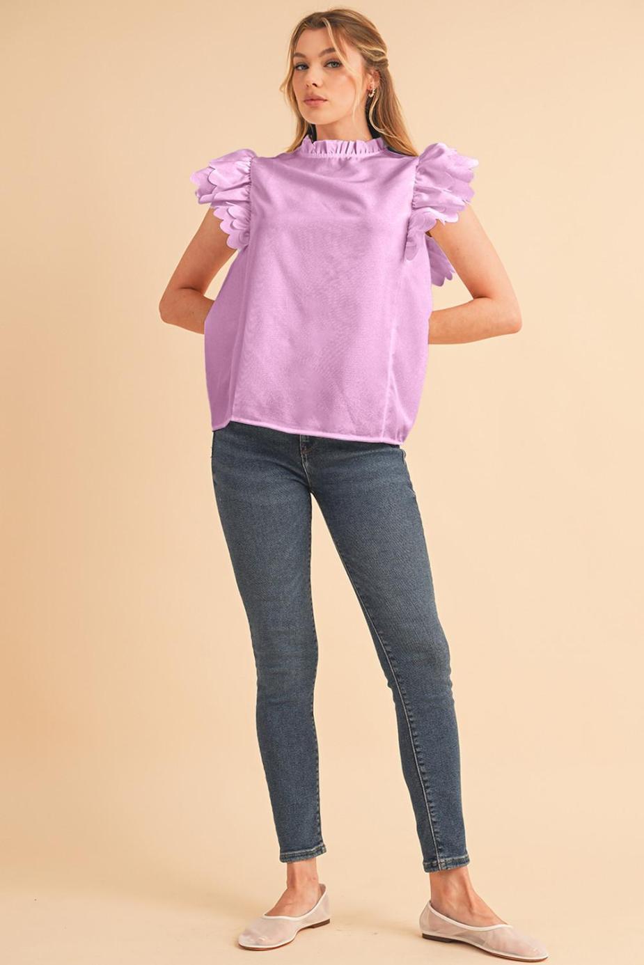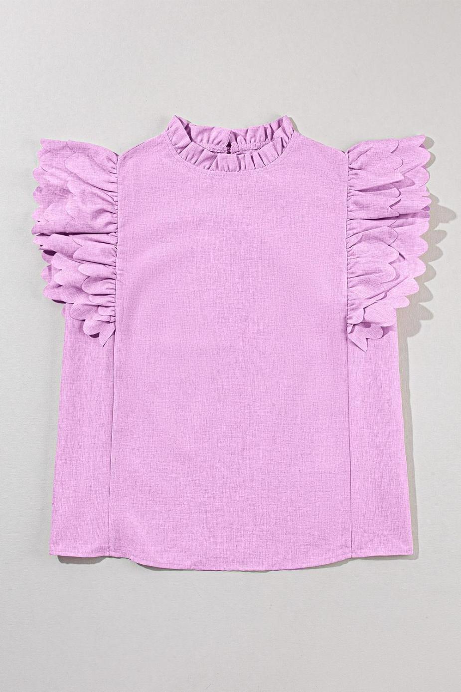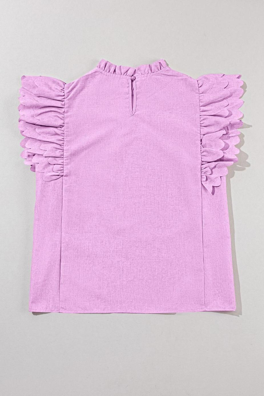 - The Blouse Is A Chic And Feminine Top Featuring Delicate Scalloped Edges And Ruffle Sleeves, Adding A Touch Of Elegance To Your Outfit.