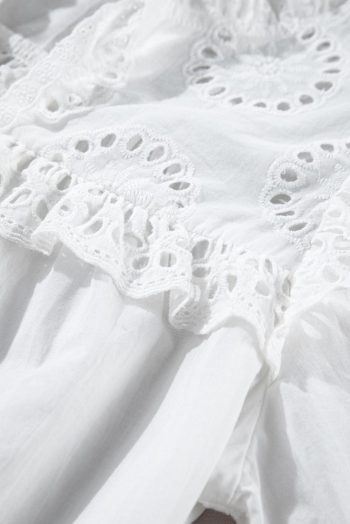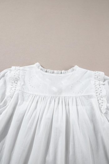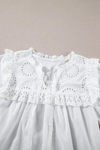 Blouses | White Embroidered Lace Patchwork Tie Neck Half Sleeve Blouse – Women