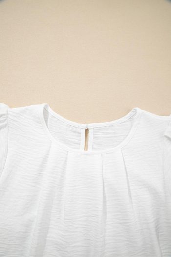 - Unique Hue Sets This Blouse Apart, Ideal For Daily Wear With Its Flounce Sleeves And Pleated Textured Design.