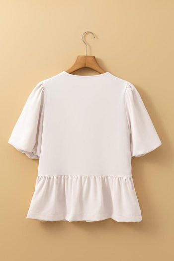 - Elegant And Versatile, This White Sweet Bowknot Puff Sleeve Peplum Blouse Adds A Touch Of Femininity To Any Outfit With Its Charming Bow Detail.