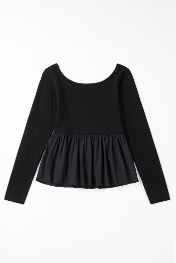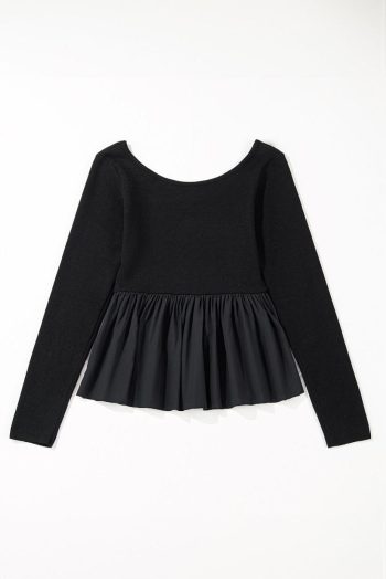 | Tag | Color Black,Pattern Plain,Detail Patchwork,Fabric Ribknit,Detail Ruffle,Style Elegant,Occasion Daily,Season Spring&Amp;Autumn,Style Minimalist,Pattern Trendywholesaleclothing,Sale Clearance,Tops Sale | ||