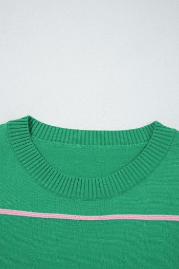 Knit Tops | Green Striped Half Sleeve Drop Shoulder Sweater – Women
