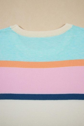 - Vibrant Stripes Dance Across This Cheerful Knit Top, Exuding A Playful And Casual Vibe Perfect For Everyday Wear.