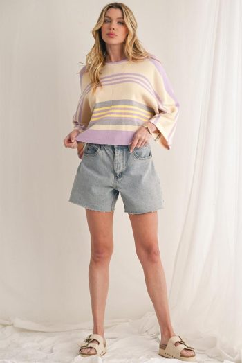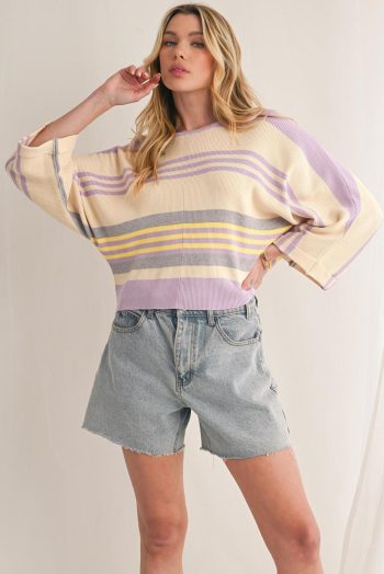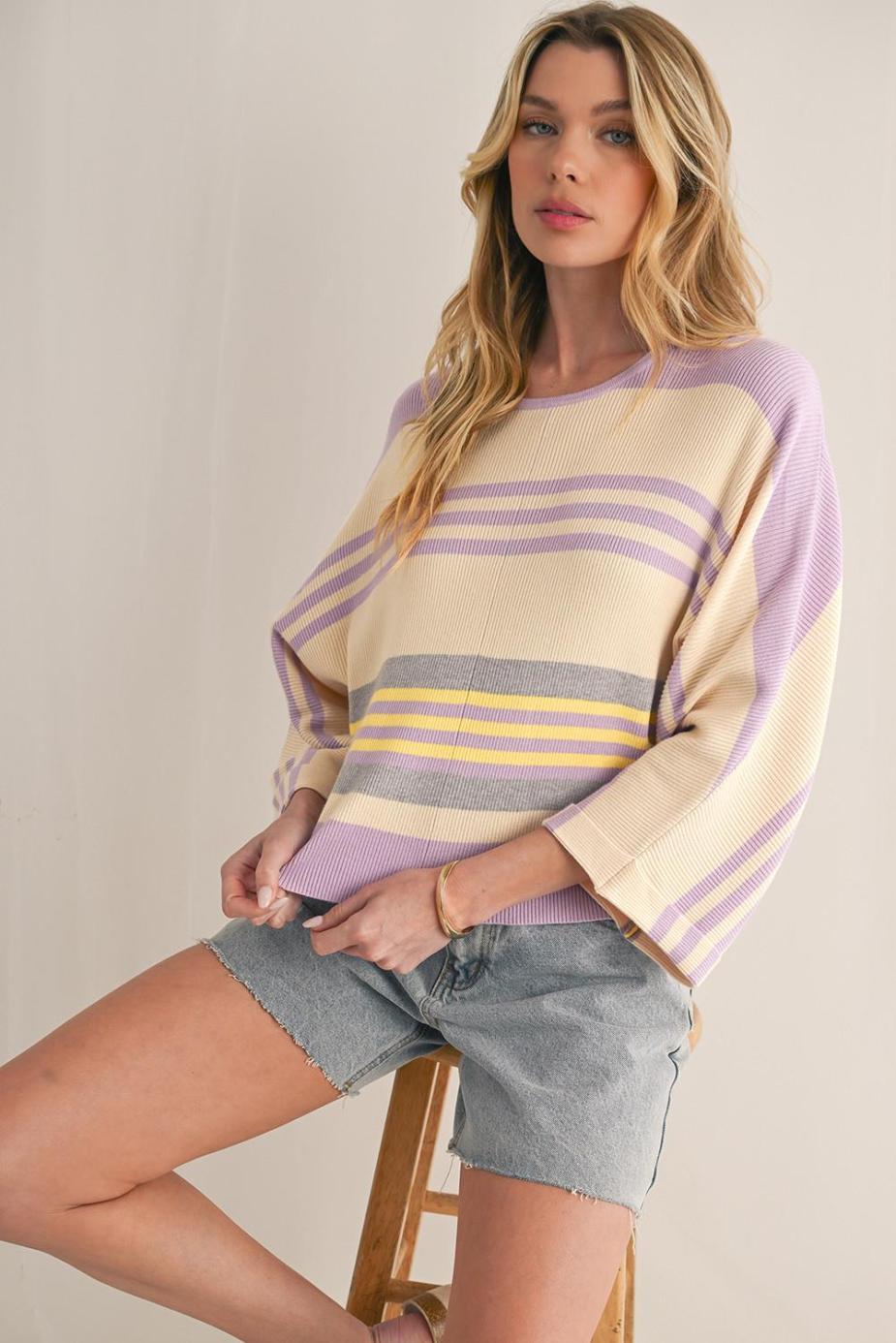 - Purple Striped Rib-Knit Cropped Top Adds A Vibrant Touch To Your Look.