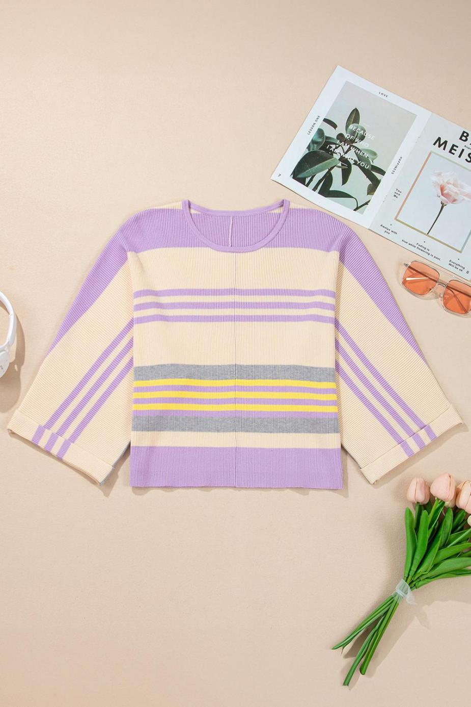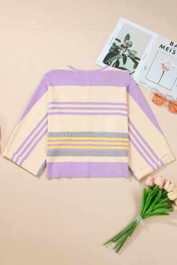 | Tag | Pattern Colorblock,Color Purple,Fabric Ribknit,Pattern Striped,Style Colorful,Style Casual,Occasion Daily,Season Spring&Amp;Autumn,Pattern Trendywholesaleclothing,Sale Clearance,Tops Sale | ||