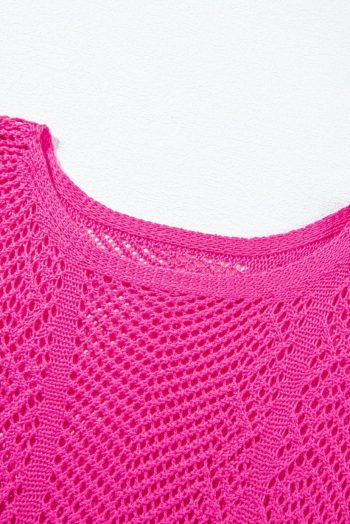 Knit Tops | Rose Red Pointelle Knit Scallop Edge Short Sleeve Knit Top – Women