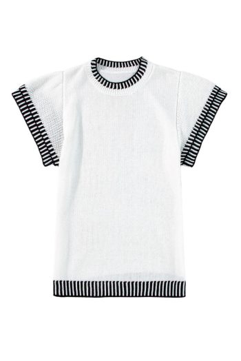 - The Contrast Trim Adds A Stylish Detail, Giving The Knitted T-Shirt A Modern And Trendy Look.