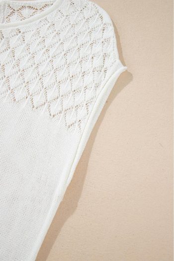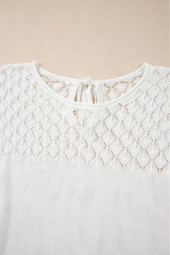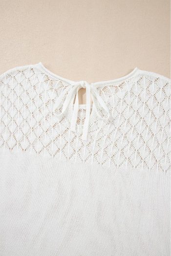 Knit Tops | White Plain Knotted Back Crochet Knit Top – Women