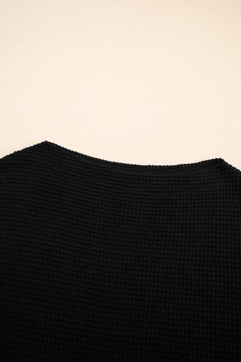 Long Sleeve Tops | Black Waffle One Shoulder Long Sleeve Knit Top – Women