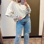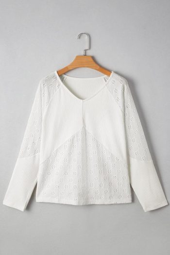 Long Sleeve Tops | White Twisted Rib Patchwork Floral Embroidered Loose Long Sleeve Top – Women