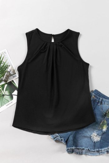 Sleeveless Tops | Black Pleated Round Neck Sleeveless Top – Women