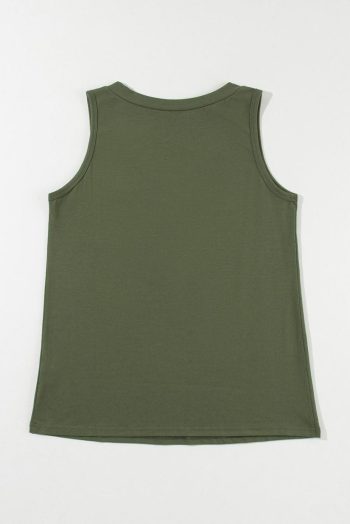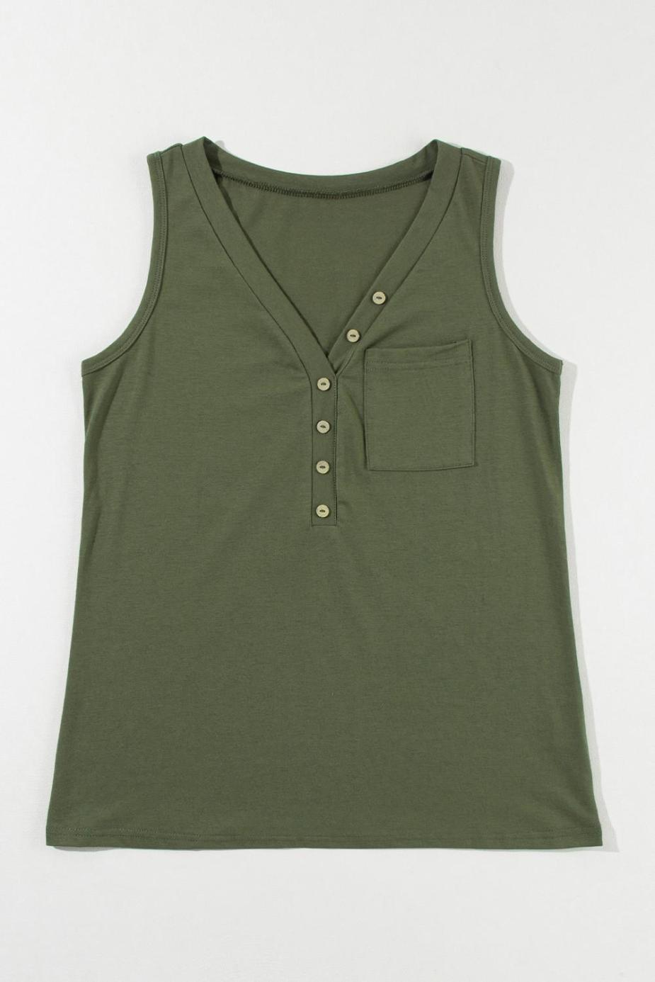 - The Tank Top Features A V Neck Ad Half Buttons Front