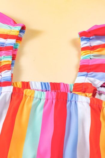 Sleeveless Tops | Red Stripe Ruffle Straps Babydoll Tank Top – Women
