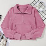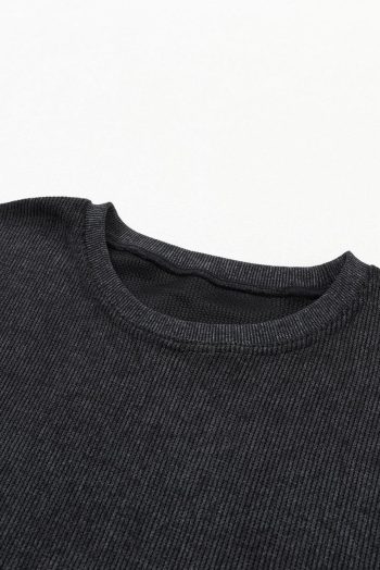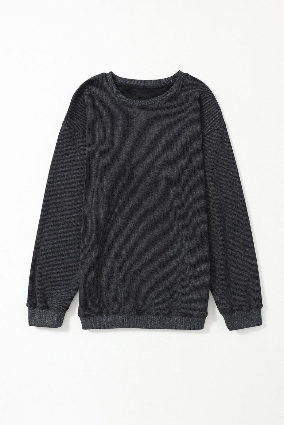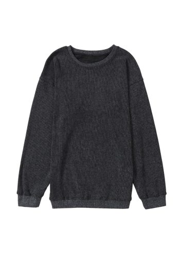 - Stay Cozy And Stylish With Our Solid Ribbed Knit Round Neck Pullover Sweatshirt.