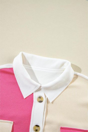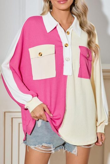 Sweatshirts & Hoodies | Rose Red Colorblock Patchwork Ribbed Oversized Henley Sweatshirt – Women