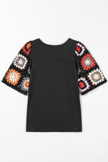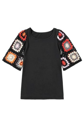 - The Hollowed Crochet Sleeves Add A Unique And Intricate Detail, Enhancing The Overall Aesthetic Of The T-Shirt.