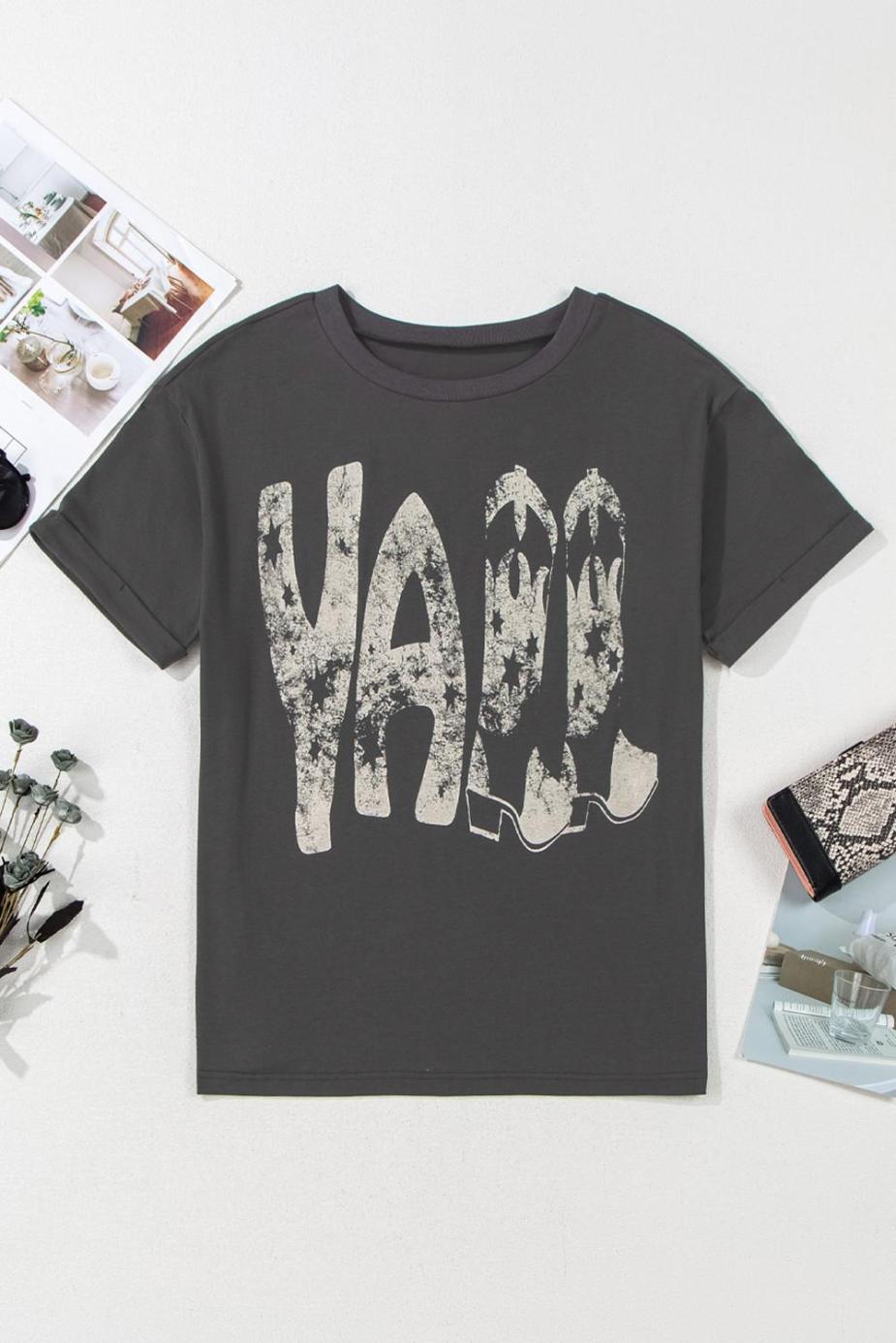 T Shirts | Carbon Grey Vintage Yall Stars Boots Graphic Tee – Women