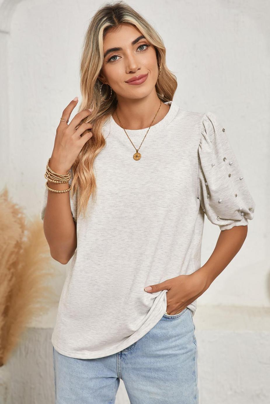 - The Plain Top Showcases A Delicate And Elegant Design With Rhinestone And Pearl Embellishments, Adding A Touch Of Glamour To Your Outfit.