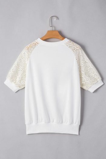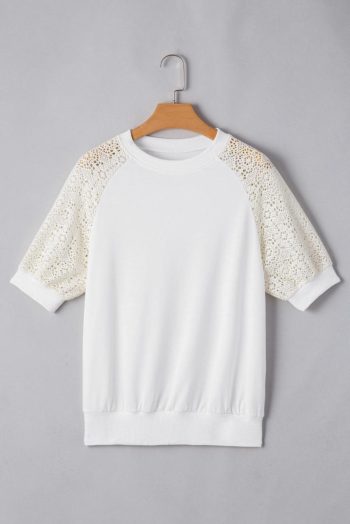 - Delicate Lace Patchwork Adds A Touch Of Elegance To This Short Sleeve Tee, Perfect For Daily Wear Or Special Occasions.
