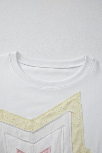 T Shirts | White Star Patched Drop Shoulder Half Sleeve Loose Tee – Women