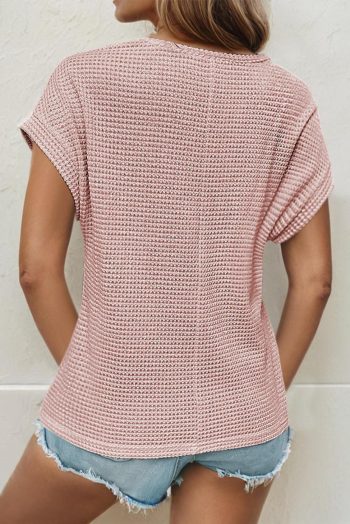 Knit Tops | Light Pink Hollow Patchwork Waffle Knit Top – Women