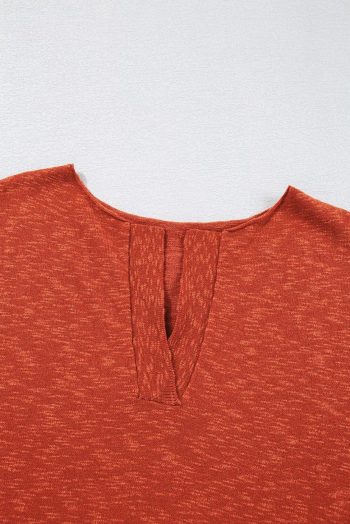 Knit Tops | Orange Solid Color Split V Neck Knit Top – Women