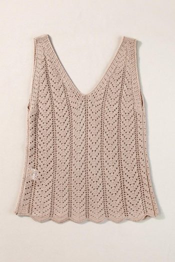 Knit Tops | Pale Khaki Scalloped Hem V Neck Crochet Knit Tank Top – Women