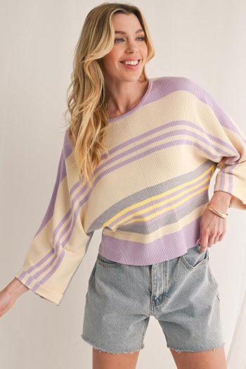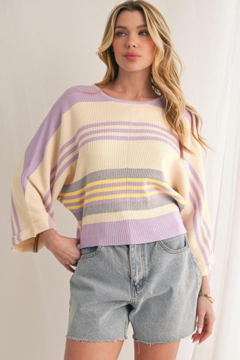 Knit Tops | Simply Taupe Pit Stripe Batwing Sleeve Top – Women