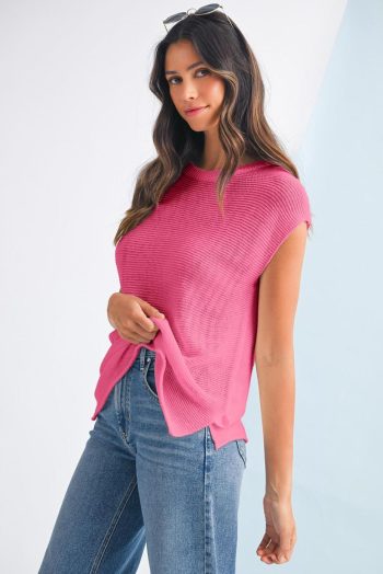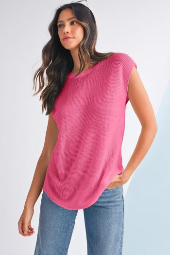 Knit Tops | Strawberry Pink Contrast Trim Ruffle Sleeveless Twist Cable Knit Top – Women