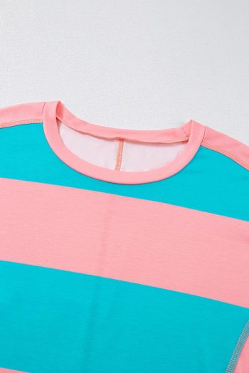 Long Sleeve Tops | Light Blue Colorblock Drop Sleeve Round Neck Top – Women