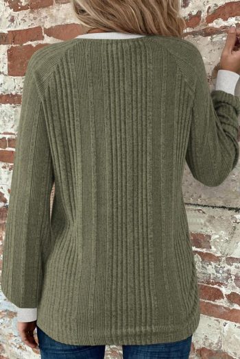 Long Sleeve Tops | Moss Green Rib Texture Contrast Trim Round Neck Long Sleeve Top – Women