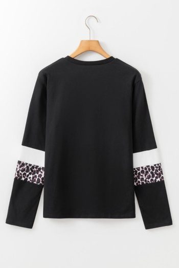 Long Sleeve Tops | White Leopard Colorblock Patchwork Crew Neck Top – Women