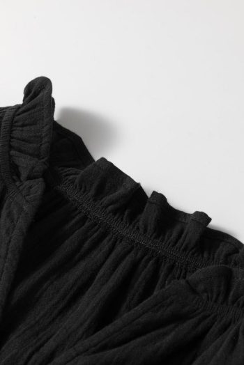 Sleeveless Tops | Black Ruffle Shoulder V Neck Sleeveless Top – Women