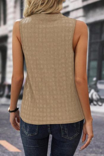 Sleeveless Tops | Light Beige Textured Split V Neck Sleeveless Shirt – Women