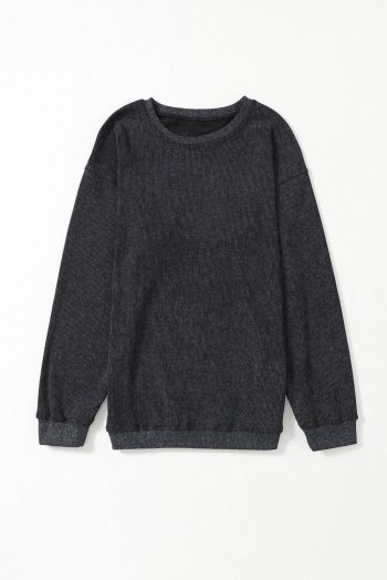 Sweatshirts & Hoodies | Black Plain Ribbed Round Neck Pullover Sweatshirt – Women