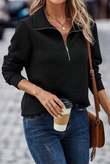 Sweatshirts & Hoodies | Black Solid Color Half Zipper Quilted Pullover Sweatshirt – Women