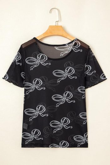 T Shirts | Black Bow Print Mesh Short Sleeve Top – Women
