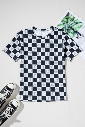 T Shirts | Black Checkerboard Print Side Split T Shirt – Women